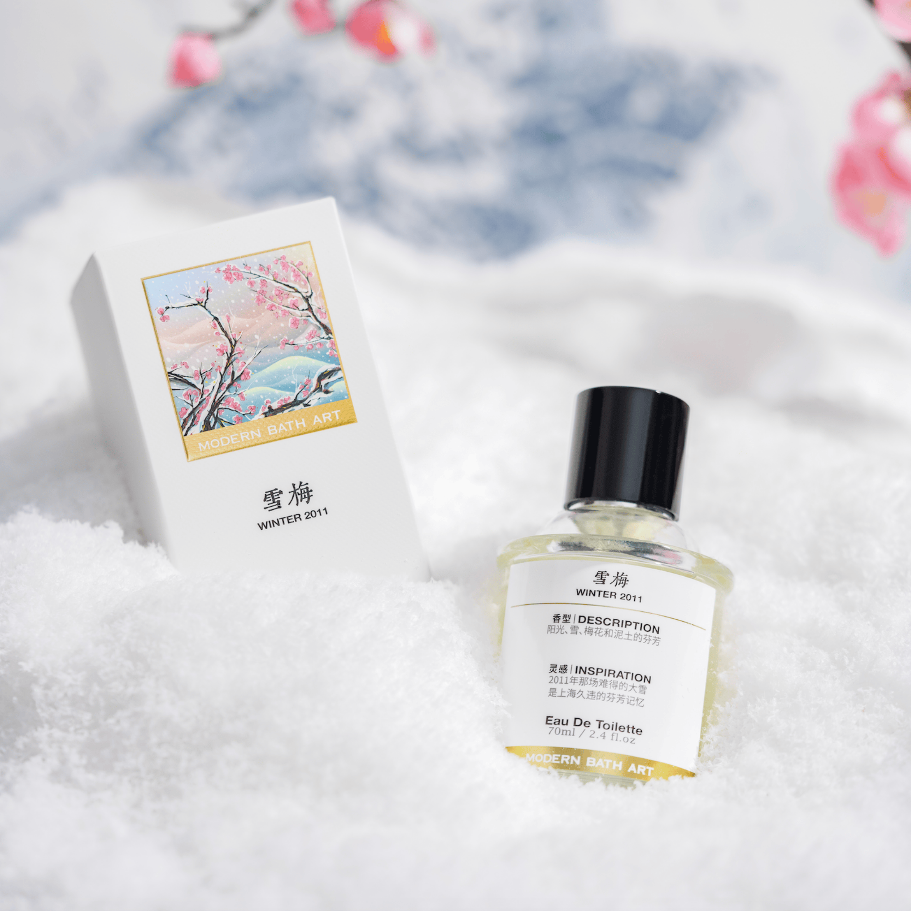 A landscape frozen in a specific memory: the quiet, crisp air of a snow-dusted morning. The scent opens with a flash of snow and citrus, softened by the starchy, comforting lift of sake.