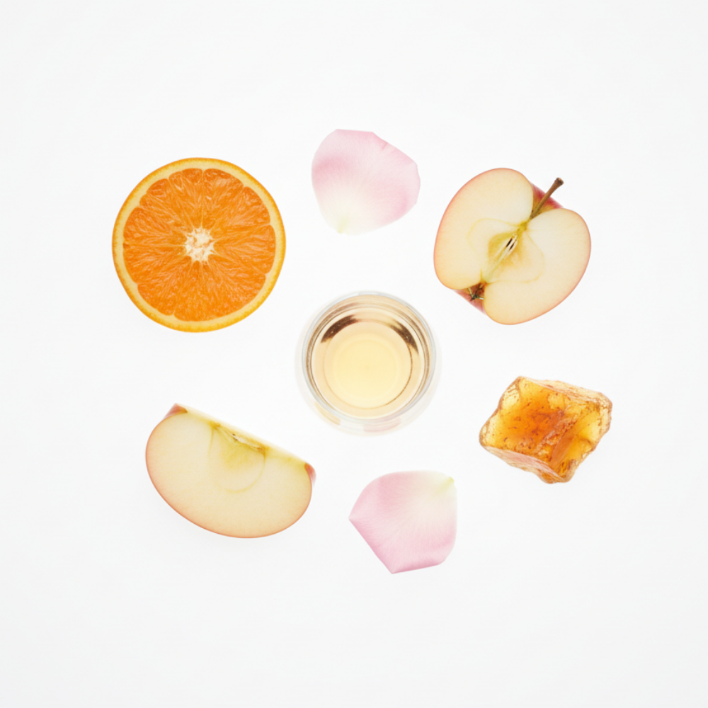 A bubbly, celebratory scent starting with a crisp cocktail of apple, pear, and bright citrus touched by the effervescence of white wine.